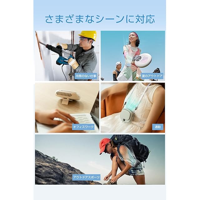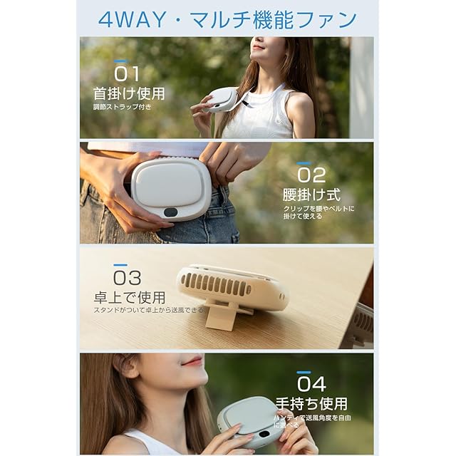 ✅【1台4役・2025最新型 扇風機】首にかけるだけで両手がふさがることなく風を送ることが出来る首かけタイプの携帯扇風機が新登場。「首掛け扇風機」長さ調整可能なストラップ付き、ハンズフリーに使え、首にかけるだけで涼しい風が感じられます。「腰掛け扇風機」クリップをベルトに付けるだけで、服内に循環送風、背中がさわやかです。「卓上扇風機」スタンドを付いているので、デスクに置くだけで涼しい風を届ける。「手持ち扇風機( ハンディファン )」通勤、通学、ショッピング、夏イベント、スポーツ観戦、散歩、登山、遠足、お祭り、花火大会などあらゆる場面で活躍し、真夏を涼しい風で乗り切ることができます。暑さが厳しい日に、首元を冷やすことで一層涼しさを体感でき、特に外を歩いても蒸れ感がだいぶ軽減され、熱中症防止にもなってくれます。