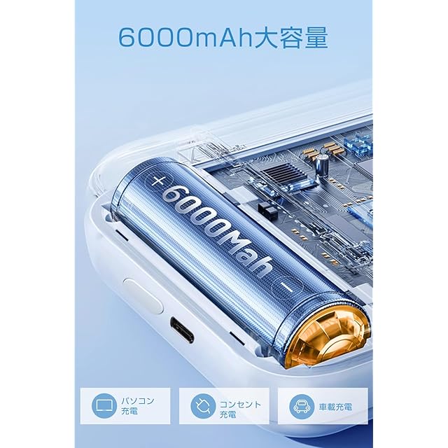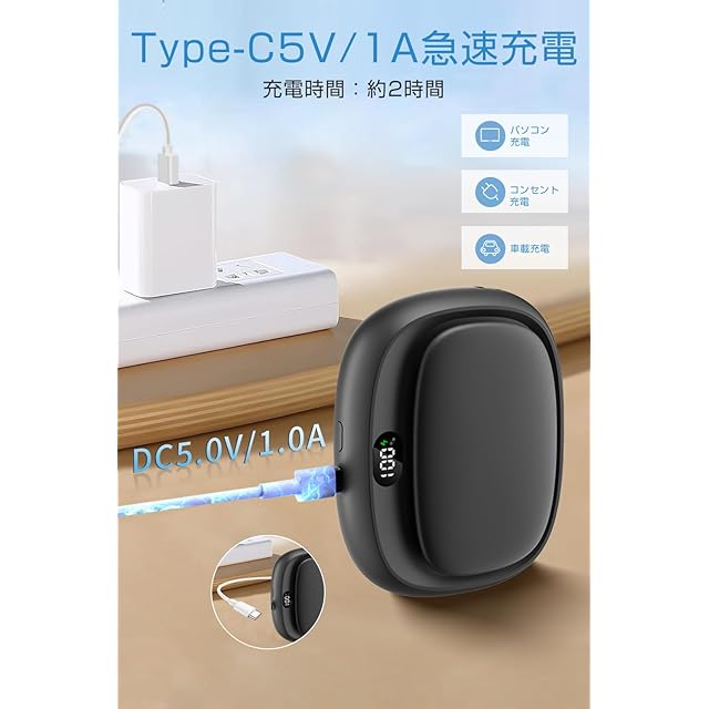 ✅【6000mAh業界最大容量バッテリー・USB充電式ポータブル扇風機】腰掛け扇風機 は6000mAh大容量のリチウムバッテリーが内蔵し、1段階モードで約10時間の連続使用ができ、強風モードでも約2時間の連続使用ができます。Type-C急速充電ポートを搭載し、充電時間は従来のより2倍短くなり、充電効率が高くなります!まだ、様々な充電方法に対応、ACアダプタ、パソコン、車載充電器で充電可能で、送風しながら充電も可能で、お出かけ時も安心です。 注意充電中に以下の事を守ってください:①必ず付属の充電ケーブルをご使用ください。②必ず5v/1Aの外部電源と接続してください。