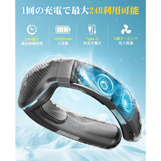 Azidxu ネッククーラー 首掛け扇風機 ネックファン 【2025最強進化上下送風】 風量3段階調節 3つの冷却プレート搭載 ネッククーラー 冷却プレート Type-C充電 10000mAh大容量バッテリー 最大24時間連続使用可能 冬夏兼用 LEDディスプレイ表示 熱中症対策 スポーツ観戦 遠足 自宅 アウトドア 山登り 工事現場 通勤通学 釣り 夏の暑さ対策に最適 (ブラック)