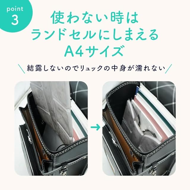 【point③】約A4サイズなので使わない時はランドセルにしまえる。結露しないのでリュックの中身が濡れない