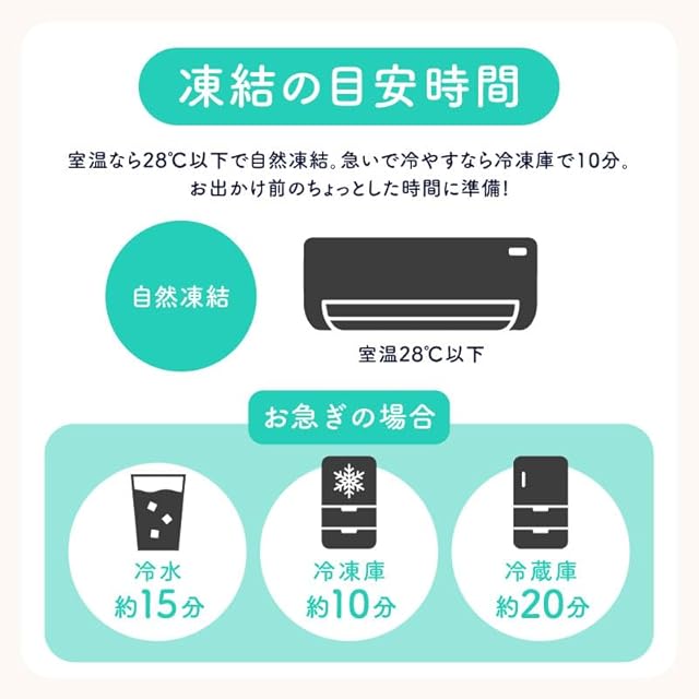 【使用方法】・使用前に破損個所がないか必ず確認してください。・使用前に冷凍庫で30分~60分ほど冷やしてからご使用ください。