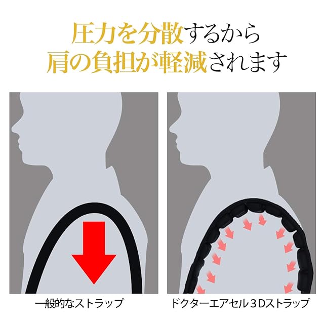 【こんな方にピッタリ】 ドクターエアセル3Dストラップはショルダーバッグやリュックなどのストラップに取り付けます。 ショルダーベルトの肩への食い込みにお悩みの方にピッタリです。