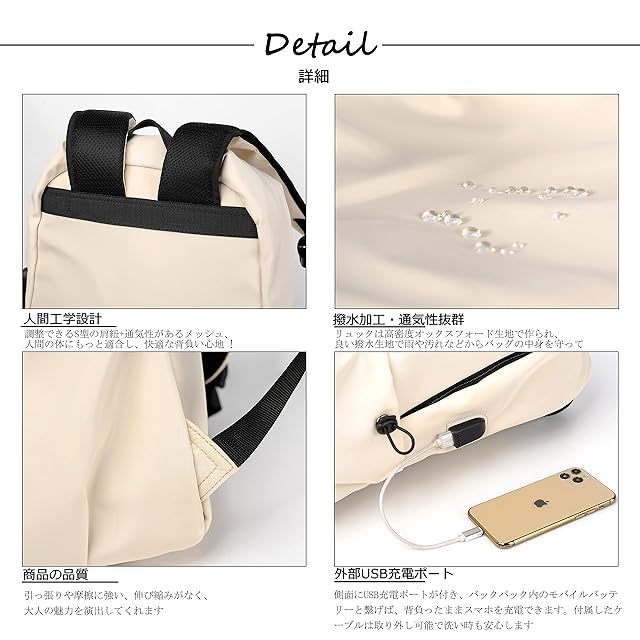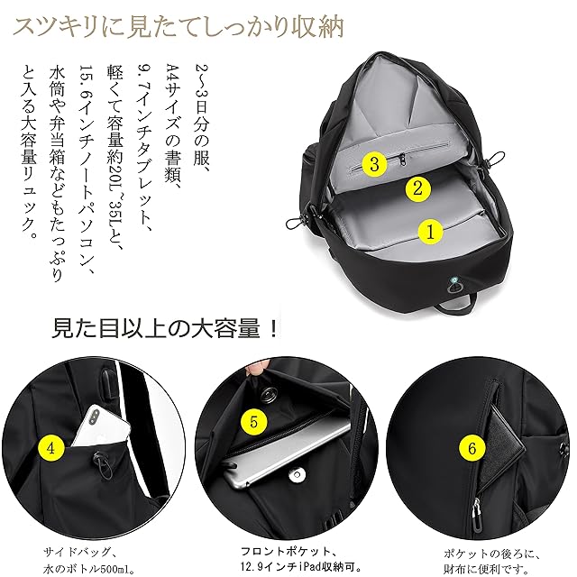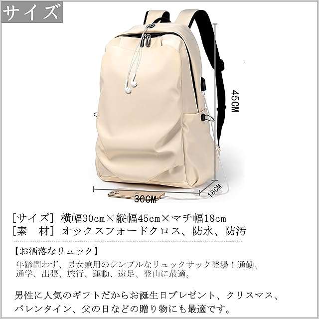 【軽量で大容量/USB充電ポート】収納力は十分にあり。A4サイズ、PC、教科書、傘、衣類、飲み物、お弁当、重い荷物を入れても安心感あり。通学や通勤や旅行や出張などにおすすめです。※バックパックの側面にUSB充電ポートあり、お手元のスマトホンを充電できます、気楽に片手で携帯電話が使えます。