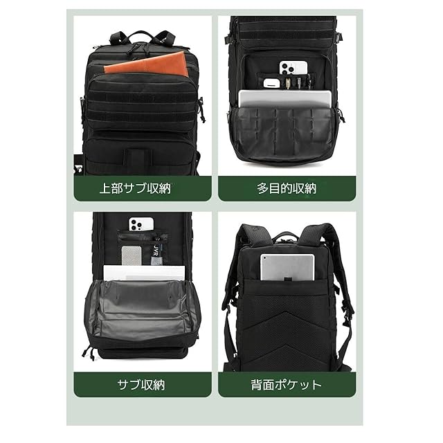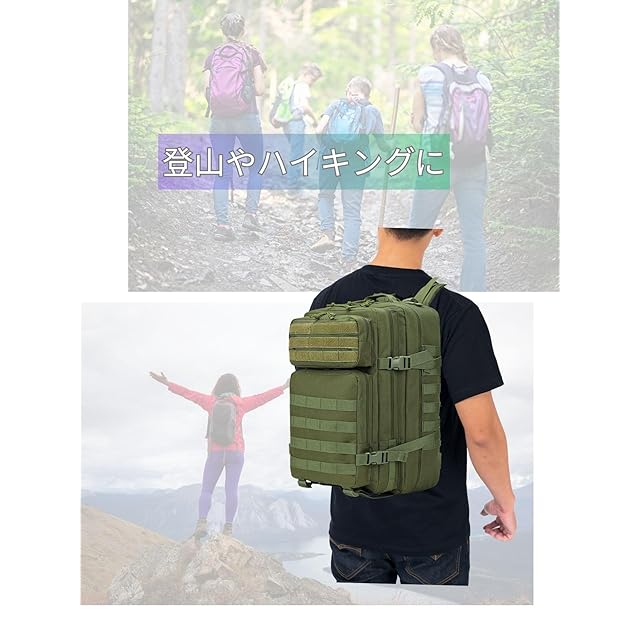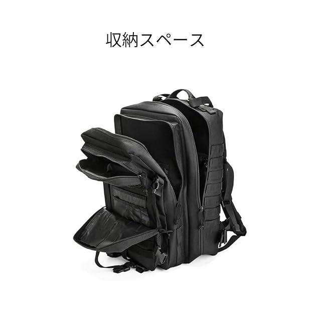 Molleシステム:このタクティカルバックパックには、前面と側面にモールシステムがあり、必要に応じて追加のタクティカルポーチや装備を追加できるようになっています。アサルトパックや戦闘パックとしてだけでなくキャンプや登山にもお使いいただけます。
