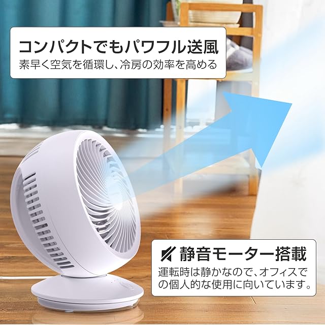 【コンパクトサイズながら清涼感抜群】:約20センチ四方のコンパクトサイズなので、狭い部屋にも、カウンターの上や棚の上などにも、置き場所を選ばずご使用頂けます。扇風機機能付きのサーキュレーターは、パワフルな風が部屋の空気を循環させ、清涼感アップ。エアコンと併用すれば、設定温度を抑えられるので節電につながります。