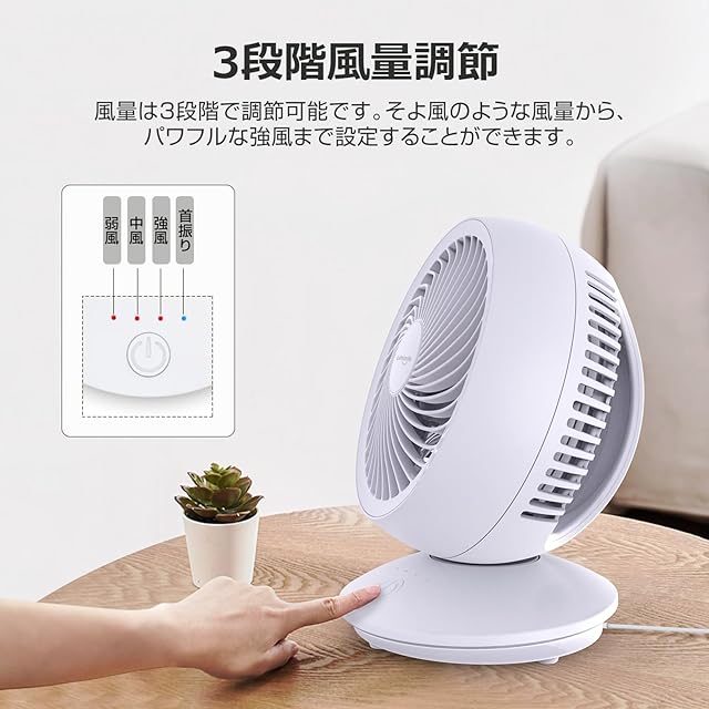 【風量3段階調整&嬉しい静音設計】:スイッチ1つで風量は微風から強風まで3段階調整ができるので、丁度よい風を堪能できますし、小さく場所を取らないので卓上 扇風機としても使用可能です。稼働中の音が囁き声と同レベルで、気にならない静音設計です。就寝時も静かな環境が得られ、作業も邪魔せず圧迫感を感じさせません。
