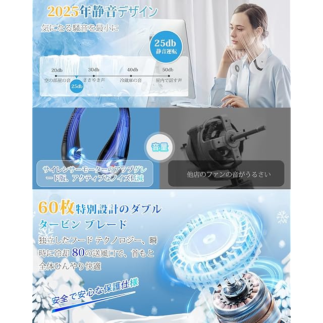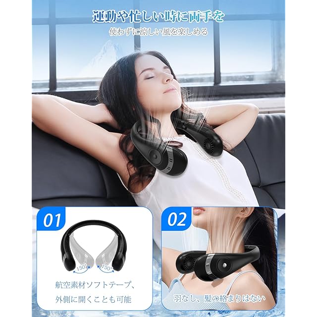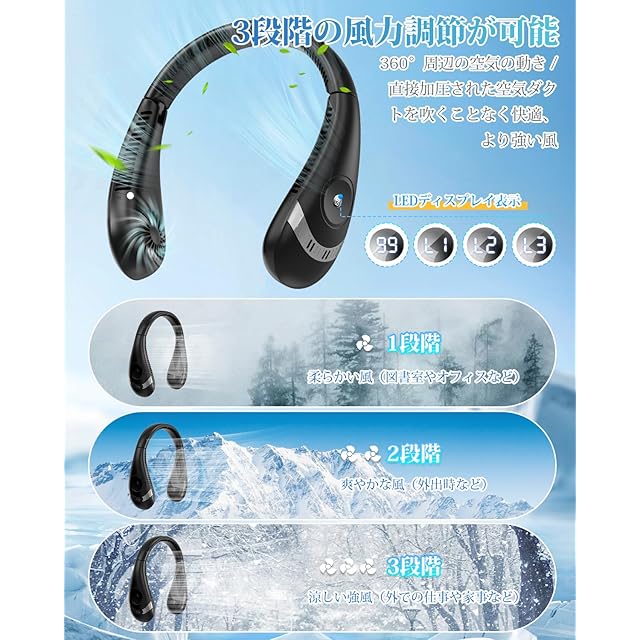 【ノイズが低い&3段階調整】独立したボタンで簡単に切り替えることができます、低/中/高速を含むもの。両側のツインタービンとツインダクトからのベニフィット。ネックファンは非常に低いノイズを生成します、より静かな冷却を楽しむことができます。